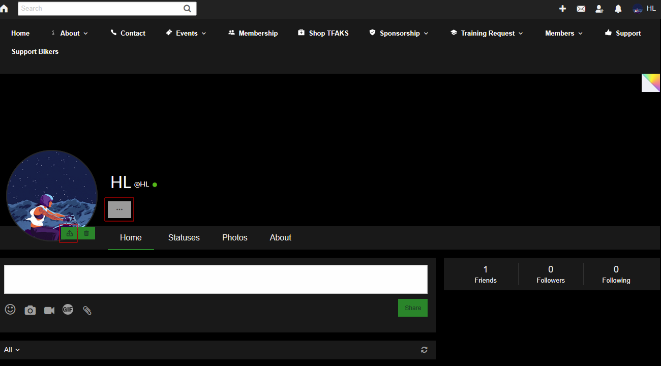 Alternatively: Go to profile -> Click on grey box with ... ->Drop down menu with options appears -> Click Upload Avatar